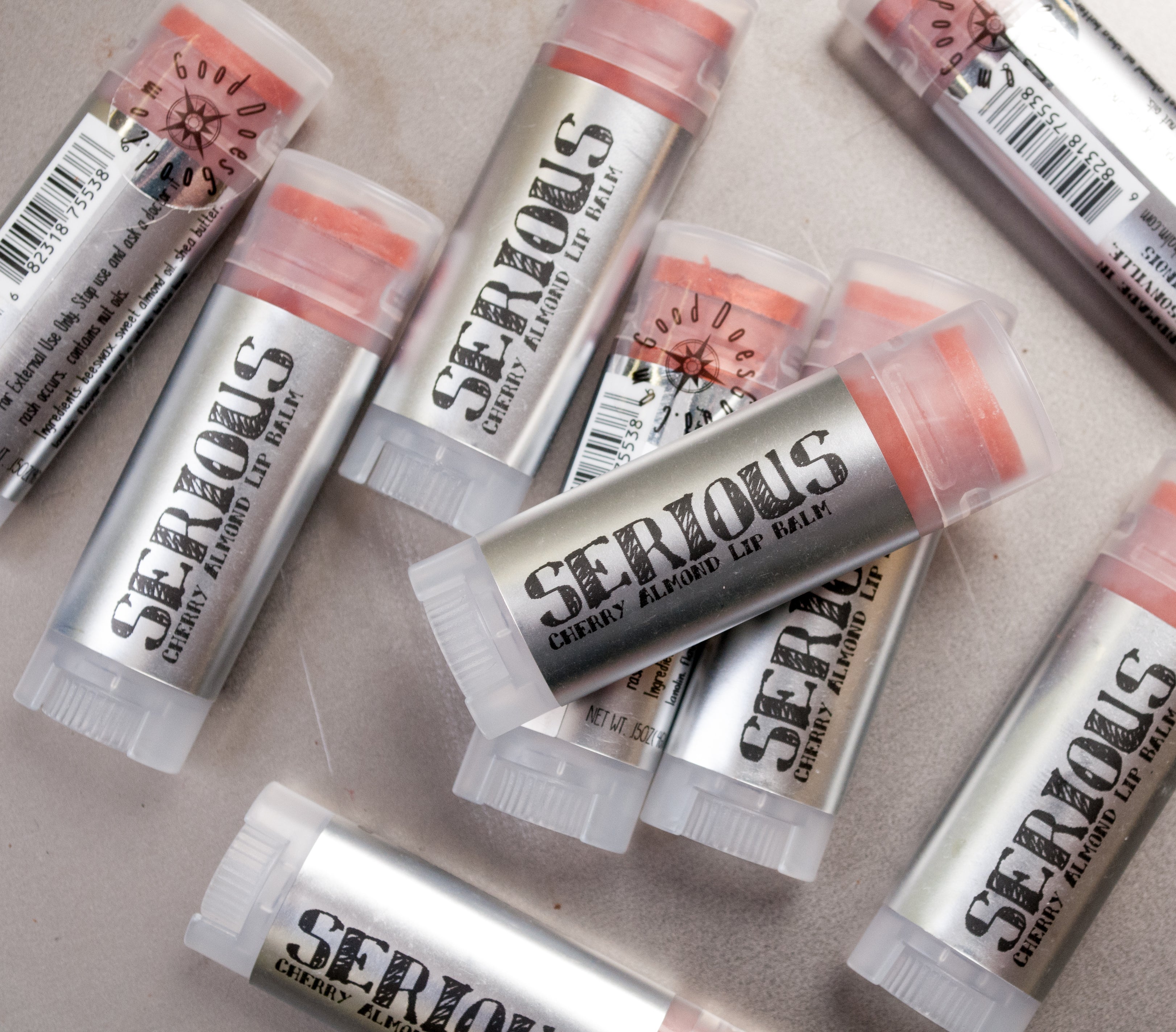 Serious Lip Balm is handmade in Jacksonville, Illinois, from sweet almond oil, beeswax, shea butter, lanolin and vitamin E oil. Each lip balm is scented, not flavored, with natural flavor oils and glides onto your lips without being sticky or greasy, Our balms soak right in to heal and protect your lips so you're ready for whatever comes your way.