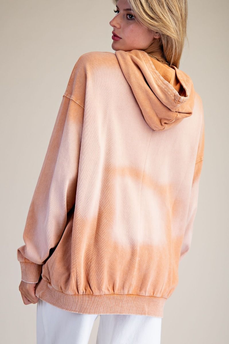 Bleach Washed Terry Knit Pullover Hoodie - Camel