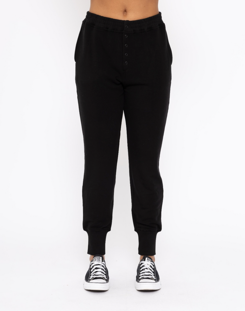 The ultimate blend of comfort and style for your casual days. These joggers feature an elastic waistband with top stitching detail and Henley style snap button fly that adds functionality and convenience. Inseam pockets provide practical storage for your essentials, allowing you to keep your hands free while on the move.