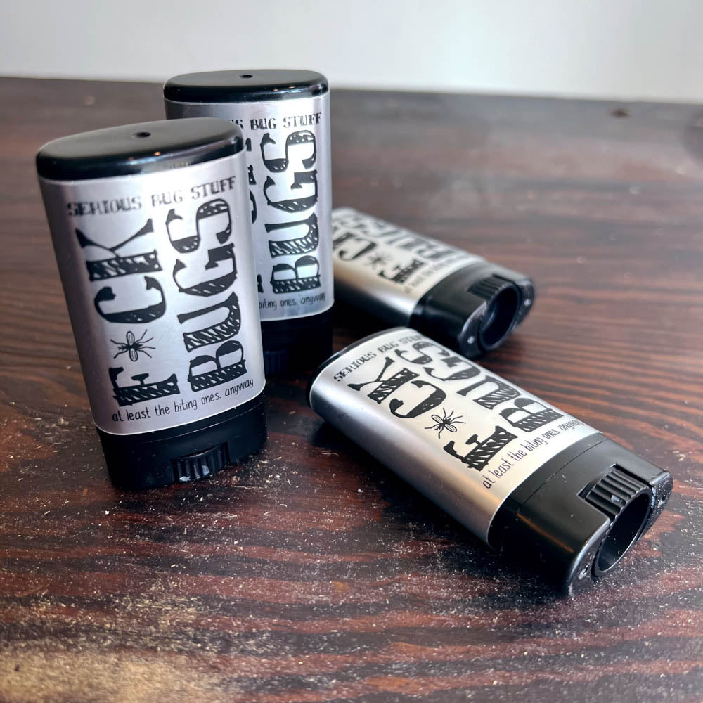 Looking for an all-natural, grease-free, simple way to keep those biting jerkface bugs from ruining your beautiful spring day AND WITH AN ADDED SNARKY BONUS? We've got you covered and F*CK BUGS will let them know you mean business! Our amazing original Bug Stuff glides on like a balm in a tube and will keep you bug-free for hours, from mosquitoes to gnats and all the rest, just with a new name and size - 0.5OZ.