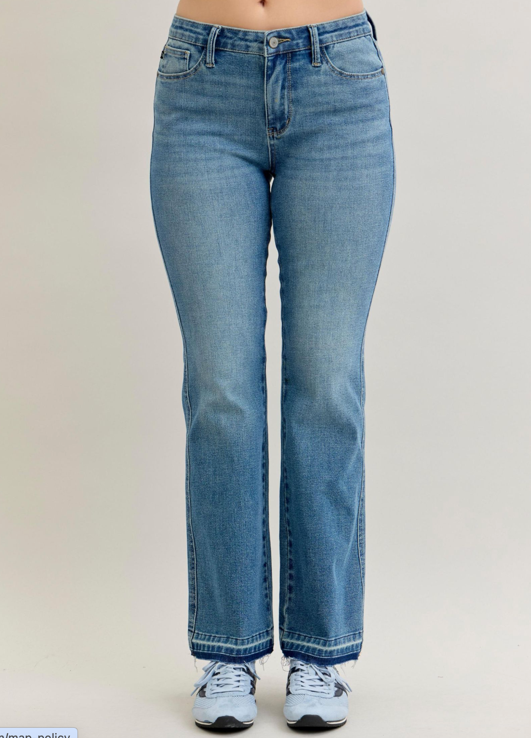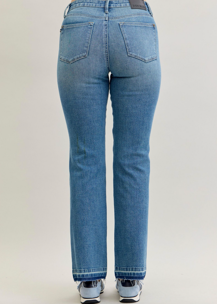For example: if you are a size 8 in department stores, you will be a size 7 in Judy Blue. If you straddle between size 10 and 12, you will be an 11 in Judy Blue.