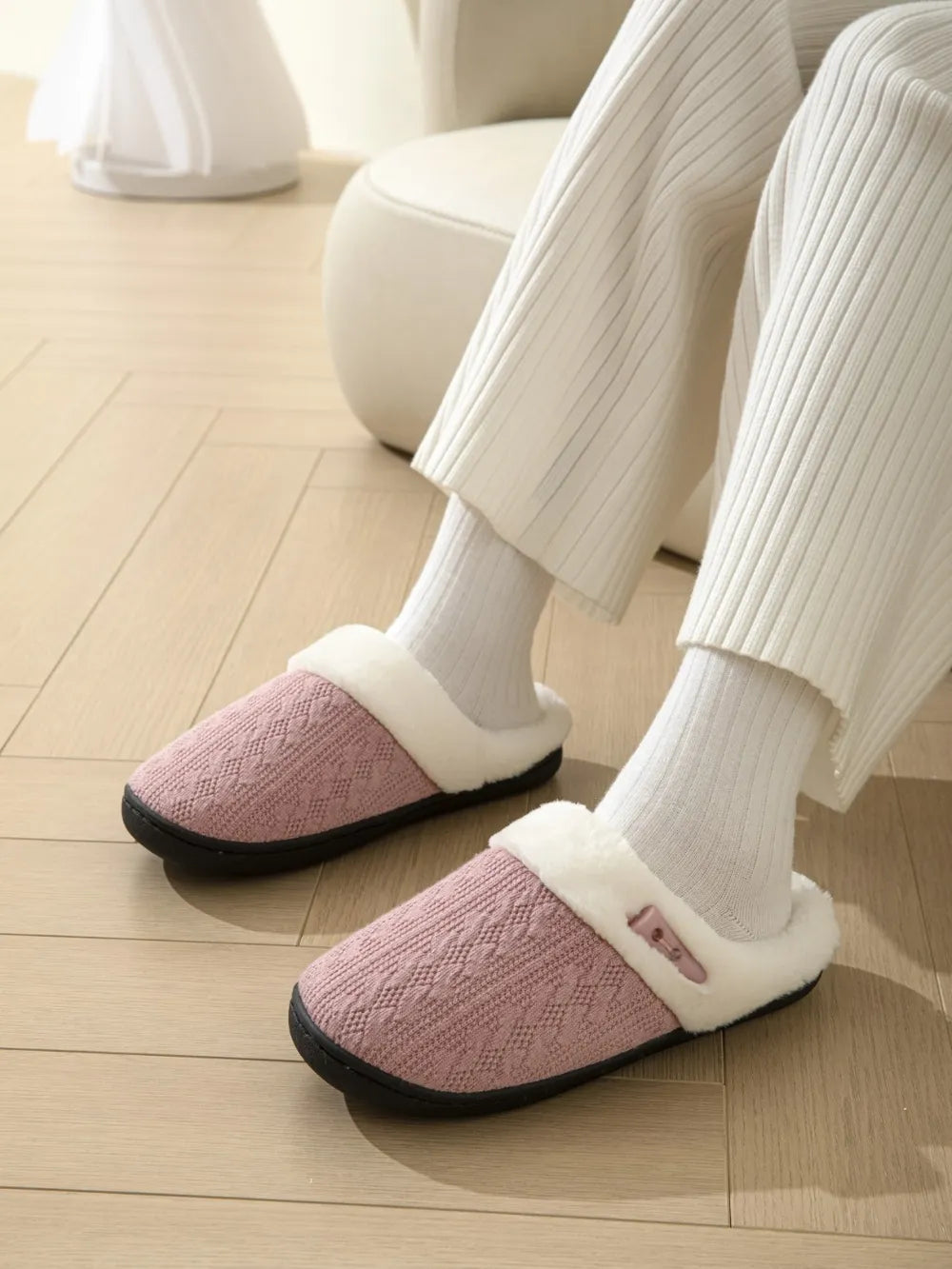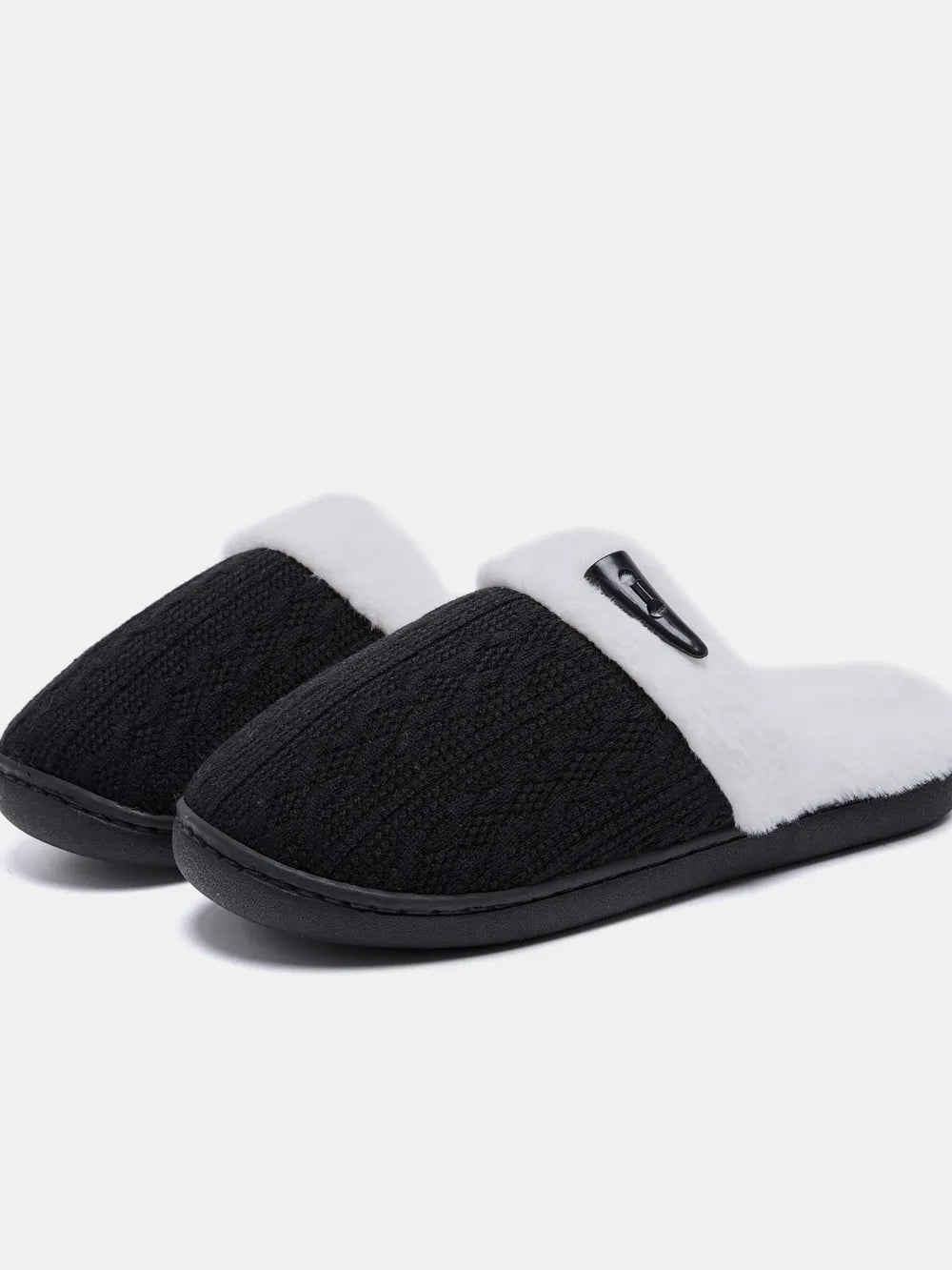 Horn Buckle Furry Texture Flat Slippers