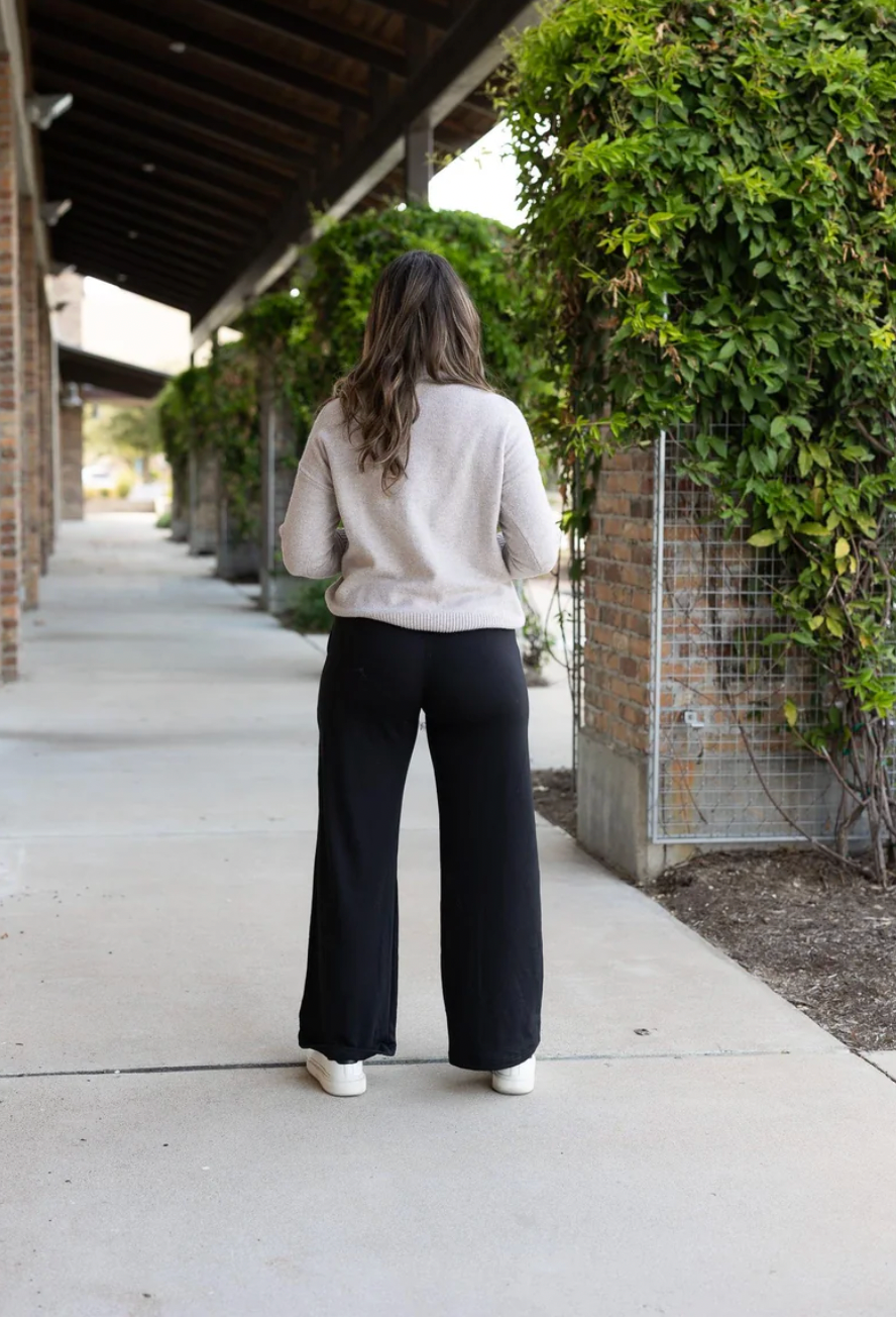 Julia Rose Fleece Wide Leg Comfy Pants - Jenna Black - Full *PREORDER*