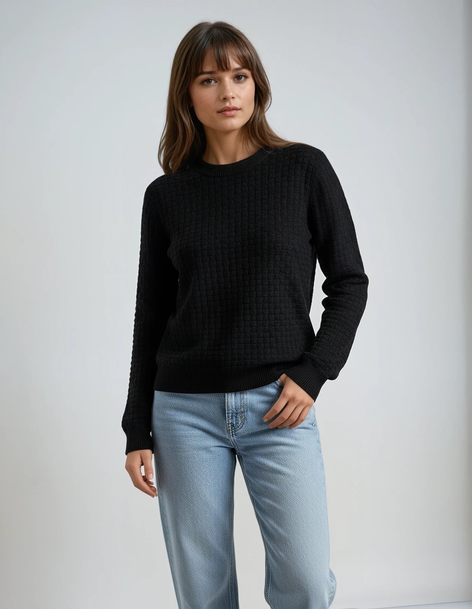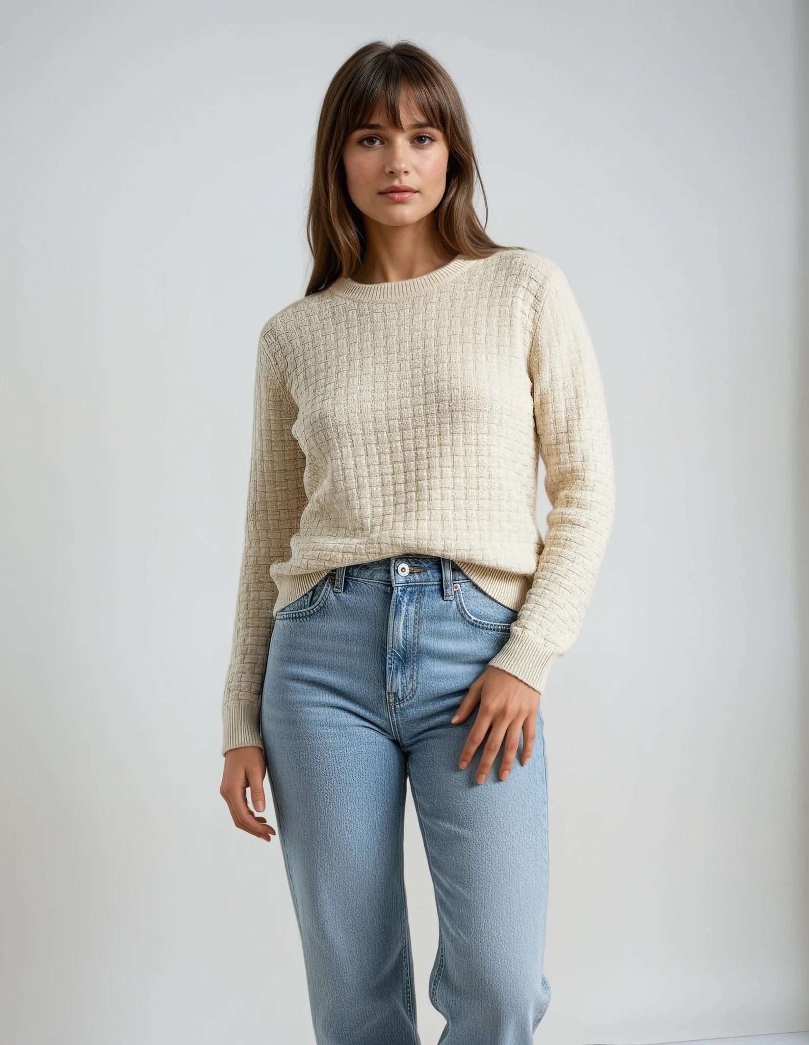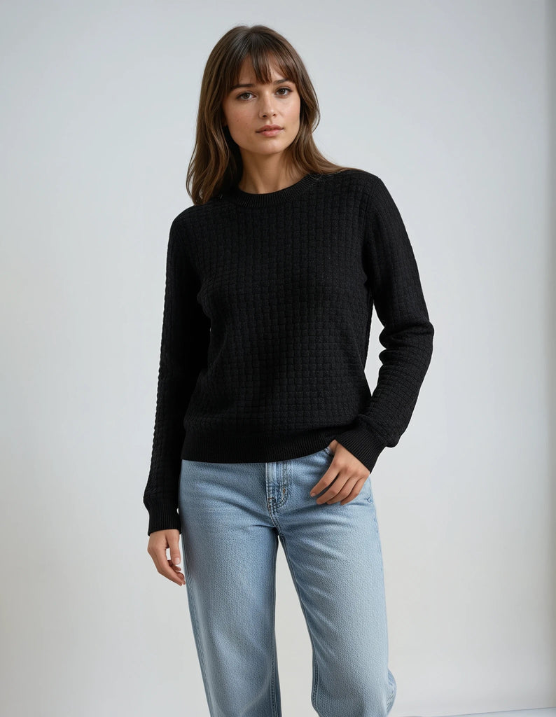 Full Size Cable Knit Round Neck Sweater - Full