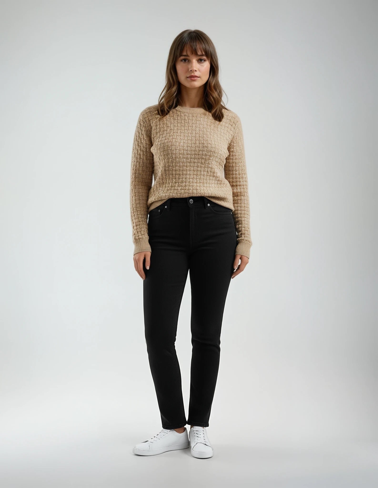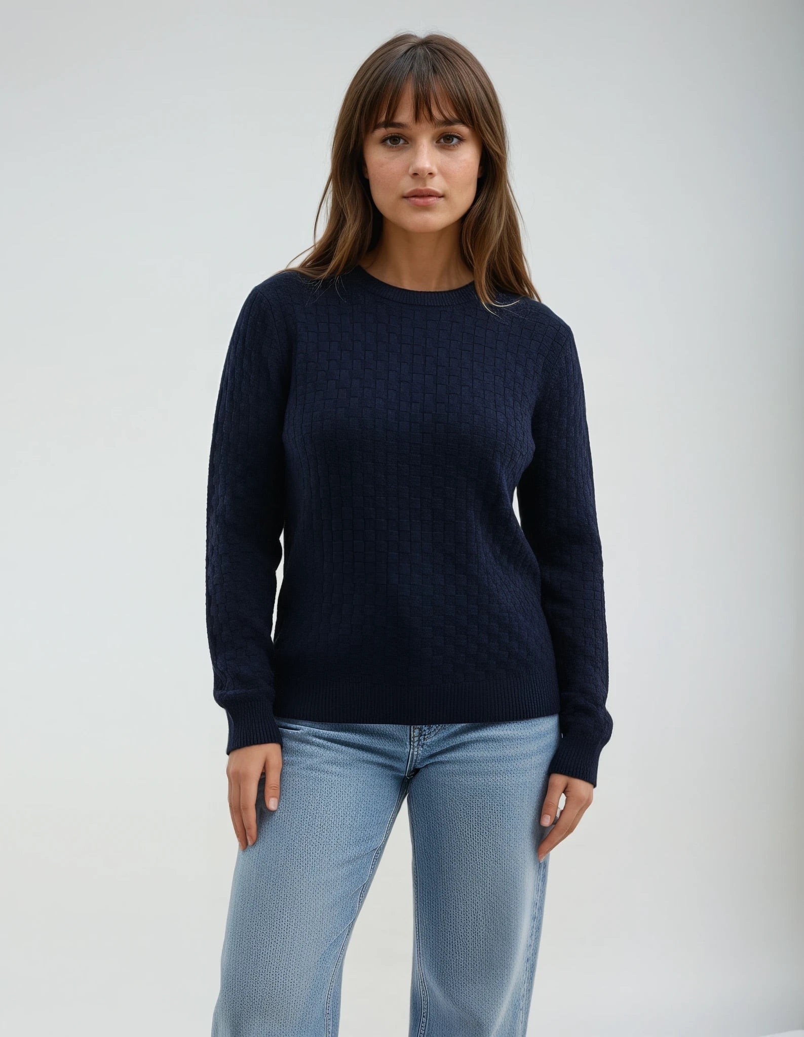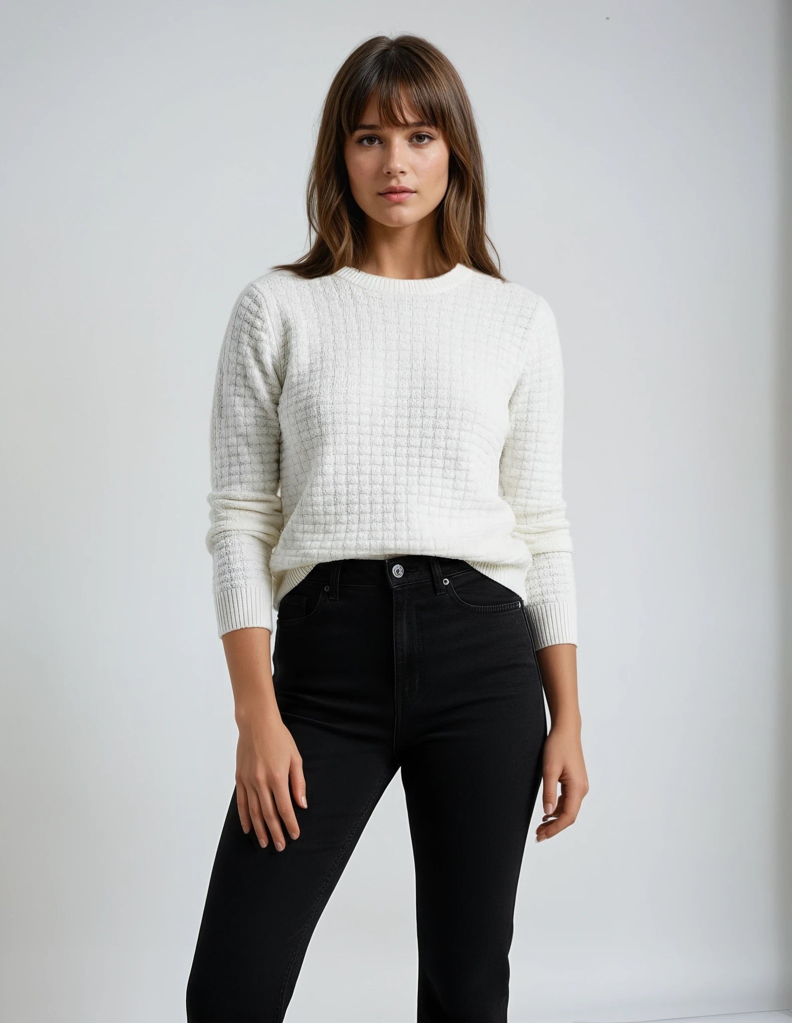 Full Size Cable Knit Round Neck Sweater - Full