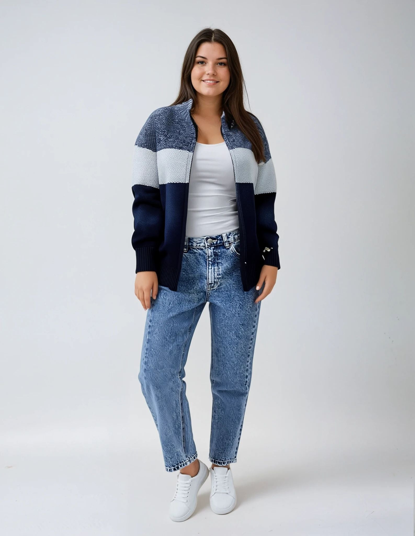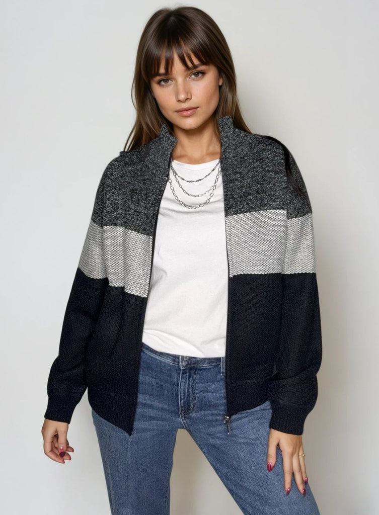 Full Size Color Block Zip Up Chunky Cardigan Jacket