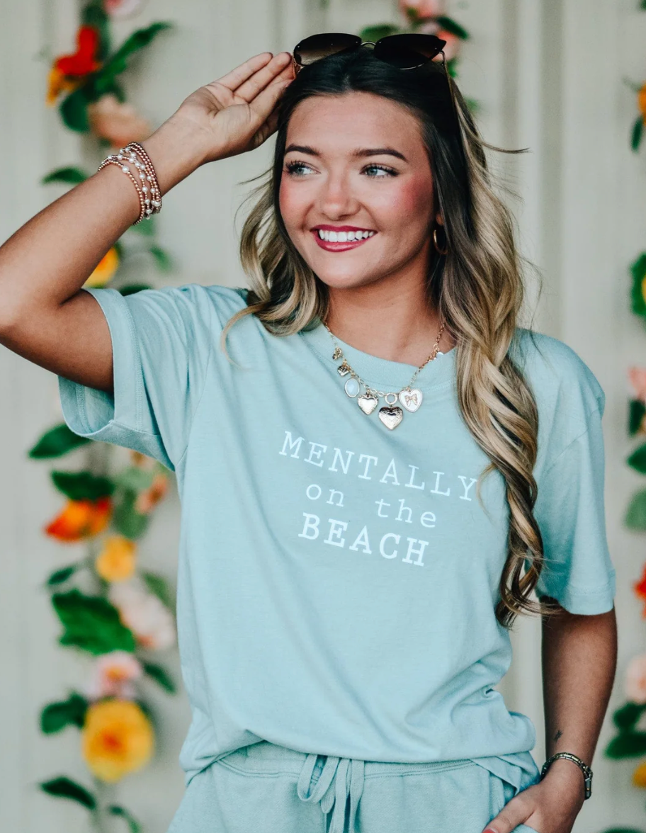 MENTALLY ON THE BEACH TEE - Sage - Full *PREORDER*