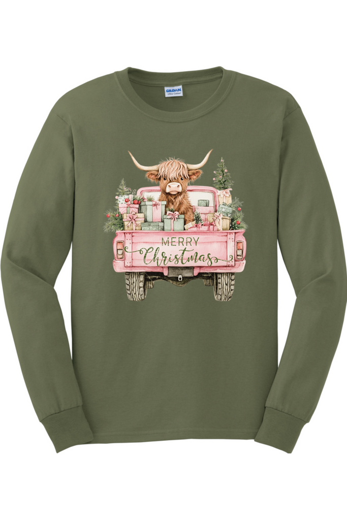 MTO Christmas Cow in Truck Ultra Cotton Long Sleeve T-Shirt