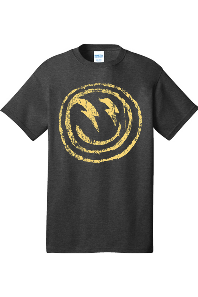 - 50/50 cotton/poly (Dark Heather Grey, Heather Navy)