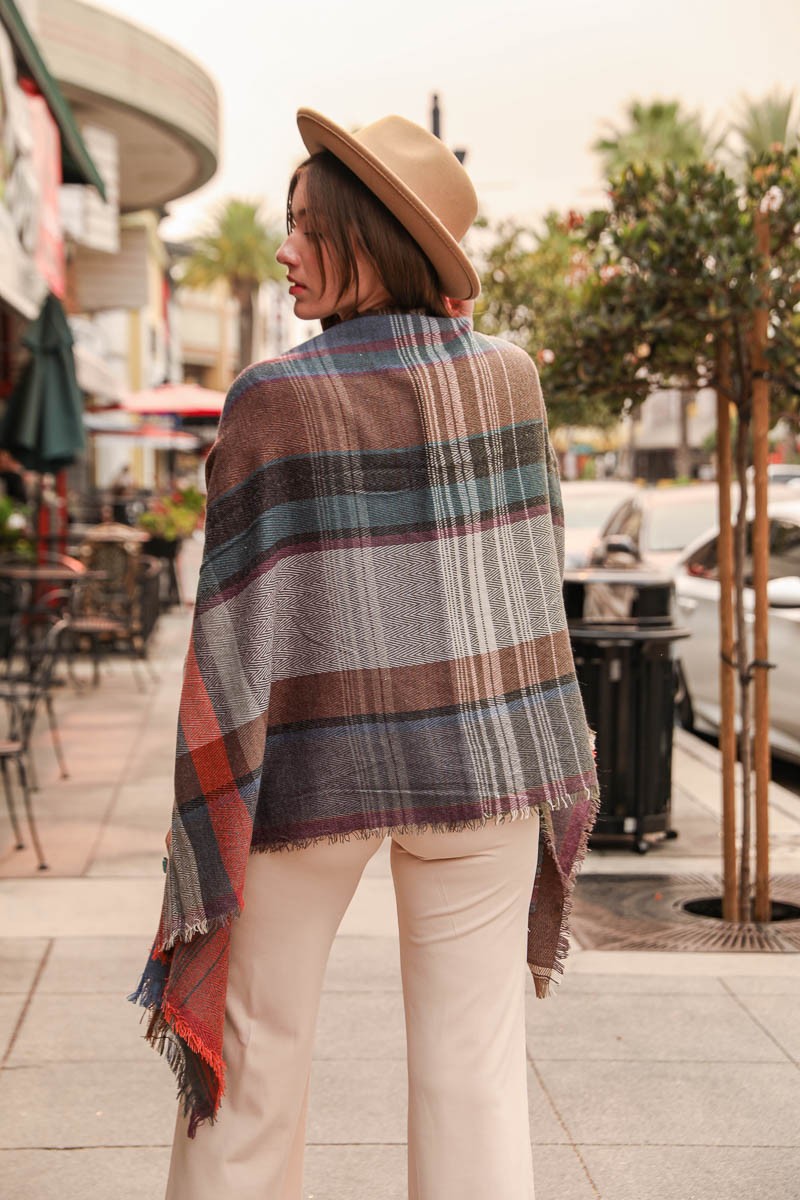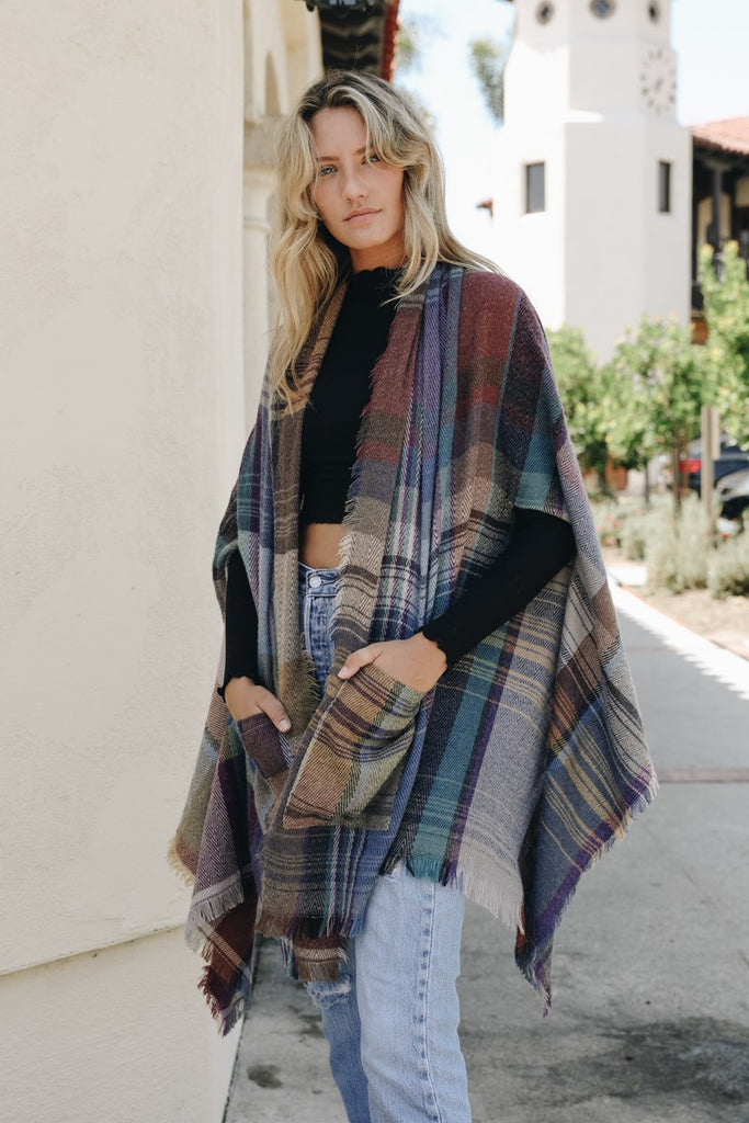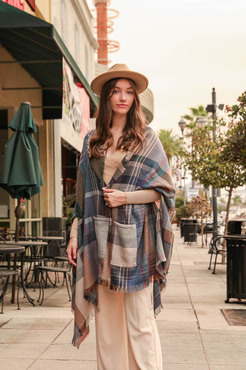 Introducing our absolute bestseller, the Multicolor Plaid Pocket Ruana. Designed with a wrap style that effortlessly drapes over any outfit, this Ruana is the epitome of comfort and style. Featuring pockets for added convenience, it's perfect for dressing up for a special occasion or adding flair to your everyday look. Experience the luxury and warmth of our top-selling Ruana today!