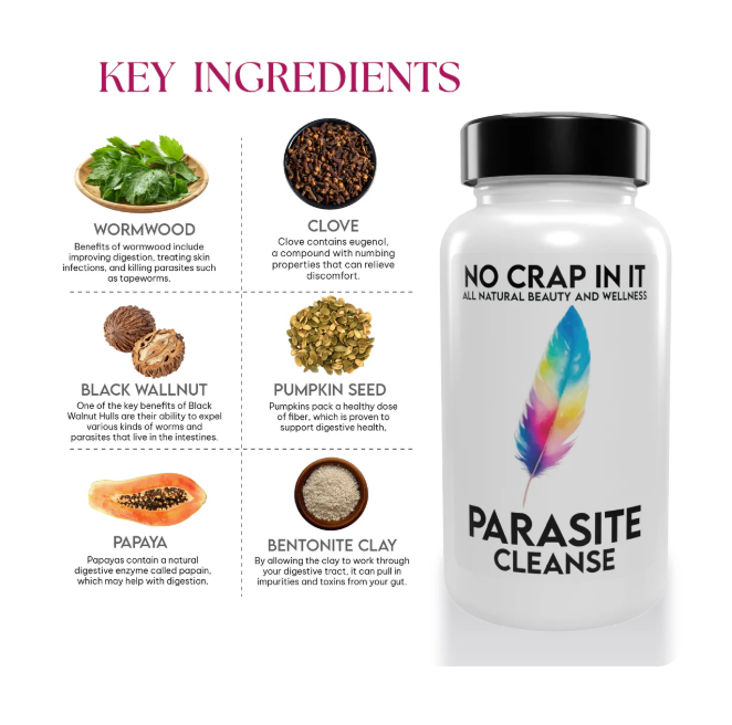 Wormwood, Clove, Black Walnut, Pumpkin Seed, Papaya.
