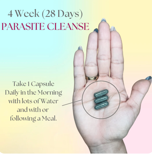 1. Parasite Cleanse Capsules: Take 1 capsule daily with water and food, preferably in the morning, for 28 days.