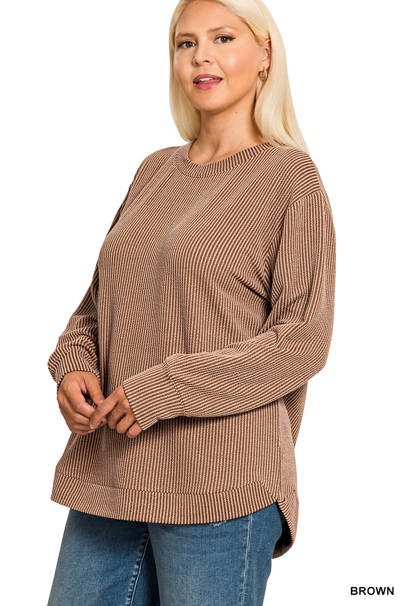 Raised Rib Round Neck Long Sleeve Top - Curvy