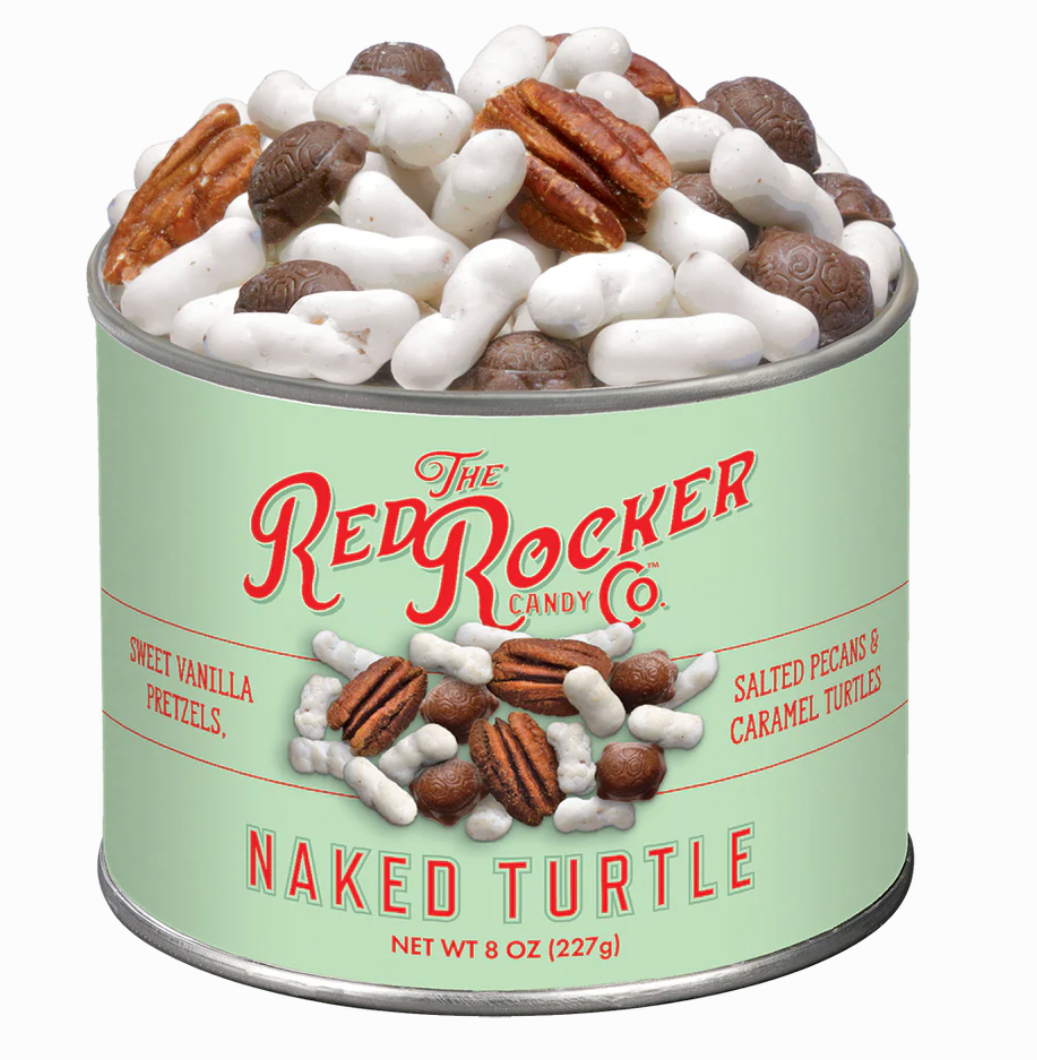A chocolate candy classic stripped-down, as the name implies, to its barest elements! Vanilla pretzels, salted pecans, and caramel turtles make our Naked Turtle pretzel mix a purely decadent treat.