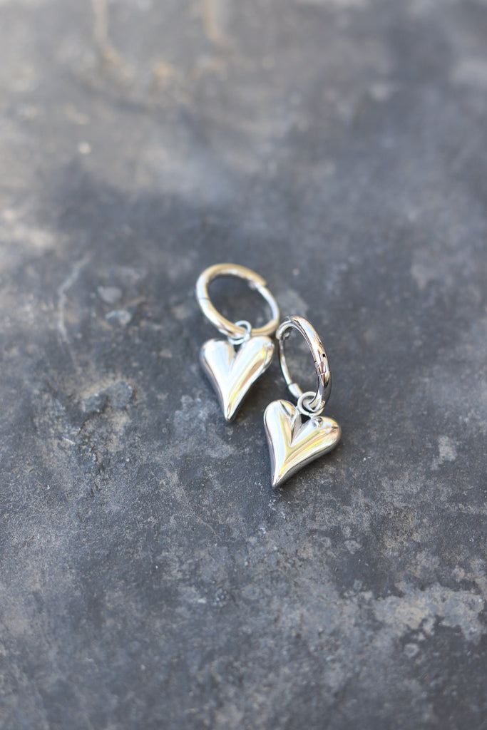 Silver Heart Huggy Earrings (Stainless Steel)