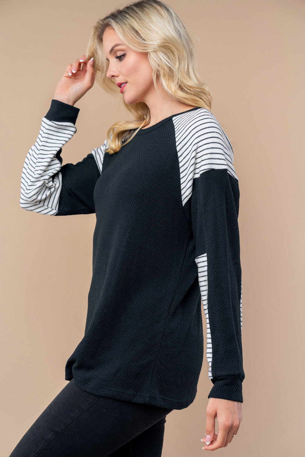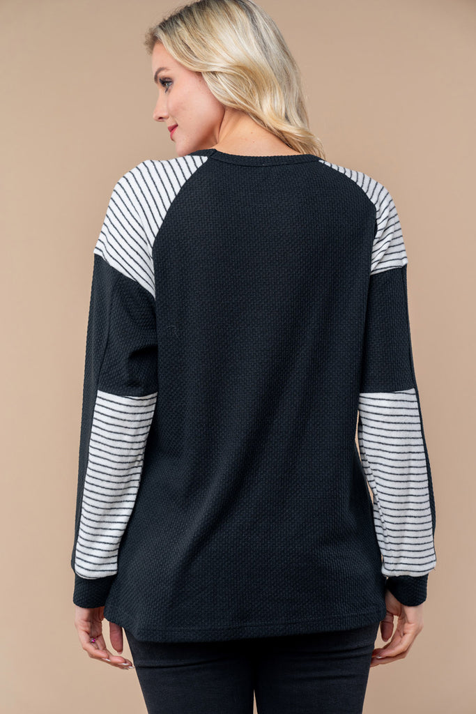 Striped Inset Long Sleeve Top - Black