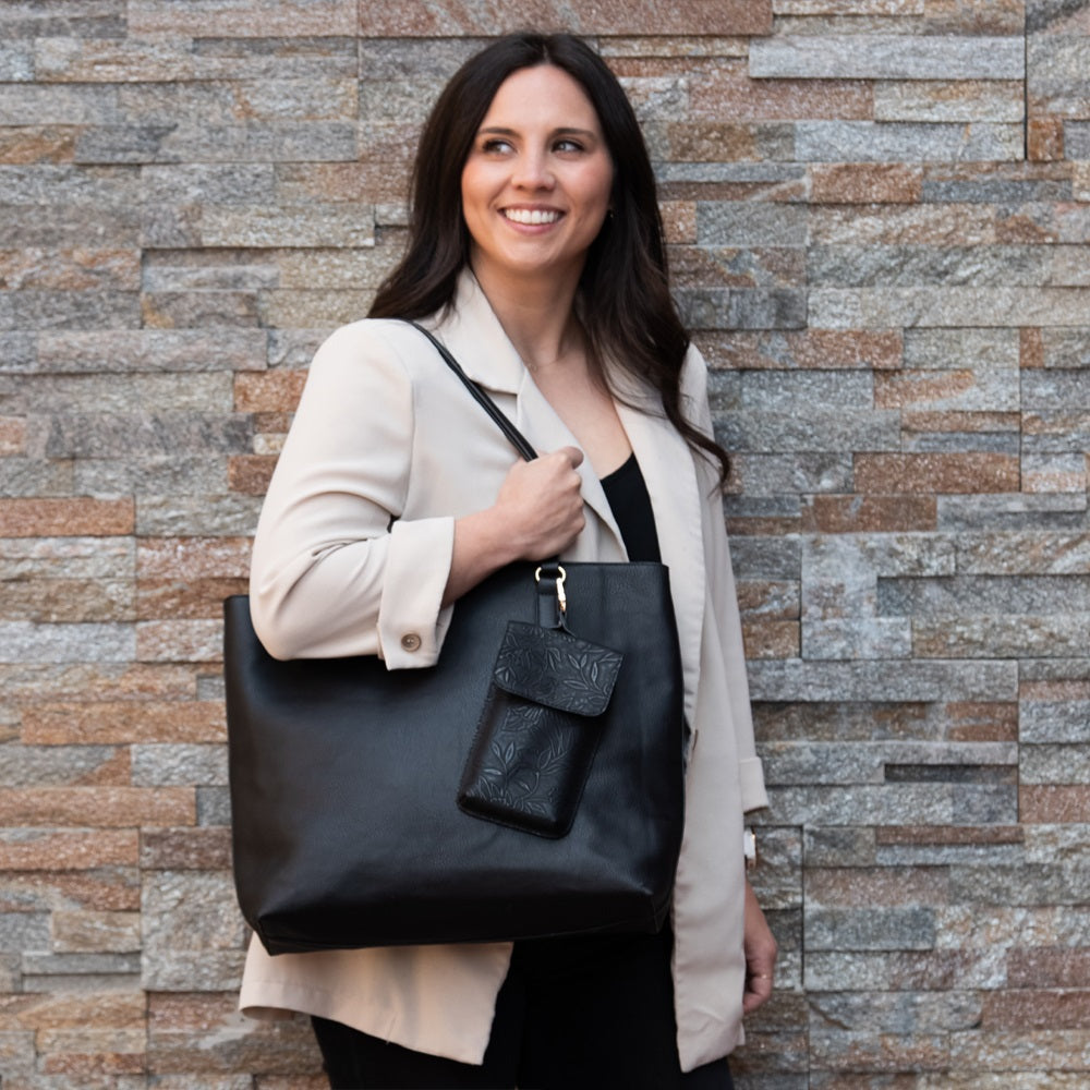 The Techy Tote Combo is the ultimate accessory for those who need to carry their tech devices and personal items in style. This tote features a spacious interior for laptops or tablets, along with multiple compartments to keep your belongings organized. The included touch screen purse allows for easy smartphone access, ensuring you stay connected on the go.