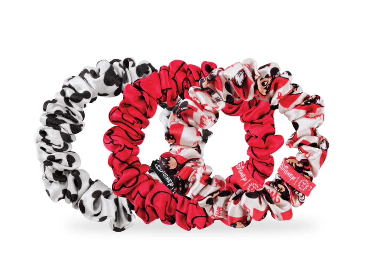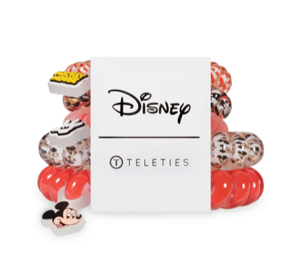Hold your hair in place with ease and style! Disney x TELETIES Mickey Mouse Mix Pack Hair Ties in Red, Black, and White offer a strong grip without damage, doubling as a stylish bracelet when not in use. Your new favorite hair essentials all year round.